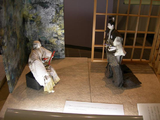 寺内の宿舎に一応落ち着いた信長がしばらくして姿を現した時、待っていた家臣たち一同はあっとわが眼を疑った。それは今迄夢想してみたこともない新しい信長の姿を見たからである。髪は折曲げに結い、かちんの長袴をはき、小脇差を差しまるで絵から抜け出たような典雅な容姿と美貌が、一きわ端麗に見せていた。出迎へる斉藤家の家老には目もくれず長袴の裾を引いてするり、するりと通りぬける。さすがのまむしの道三も、これはただの うつけではないぞと内心きもを冷やすのである。